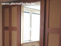 Világos barna színre pácolva, selyemfényű lakkal felületkezelve. Kazettás ajtóbetétek fonott nádból készültek. Rejtett tolóajtó vasalat, önbehúzós fiókok.