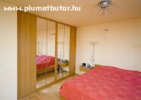 Laminált bútorlapból készült beépített gardróbszekrény, natúr cseresznye színben.
